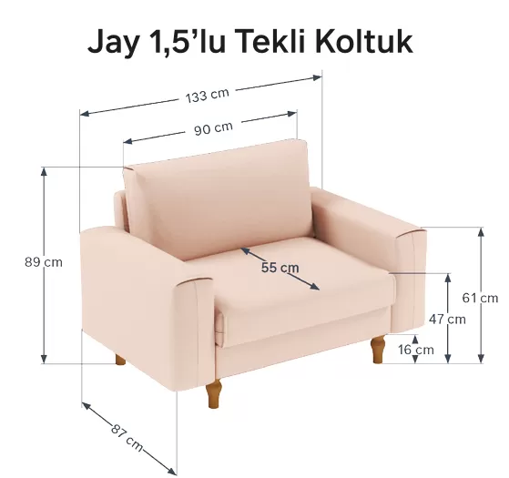 Jay 1,5'lu Tekli Koltuk, modern çizgileriyle çift kişilik bir oturma alanı sunar. Estetik ve konforlu.